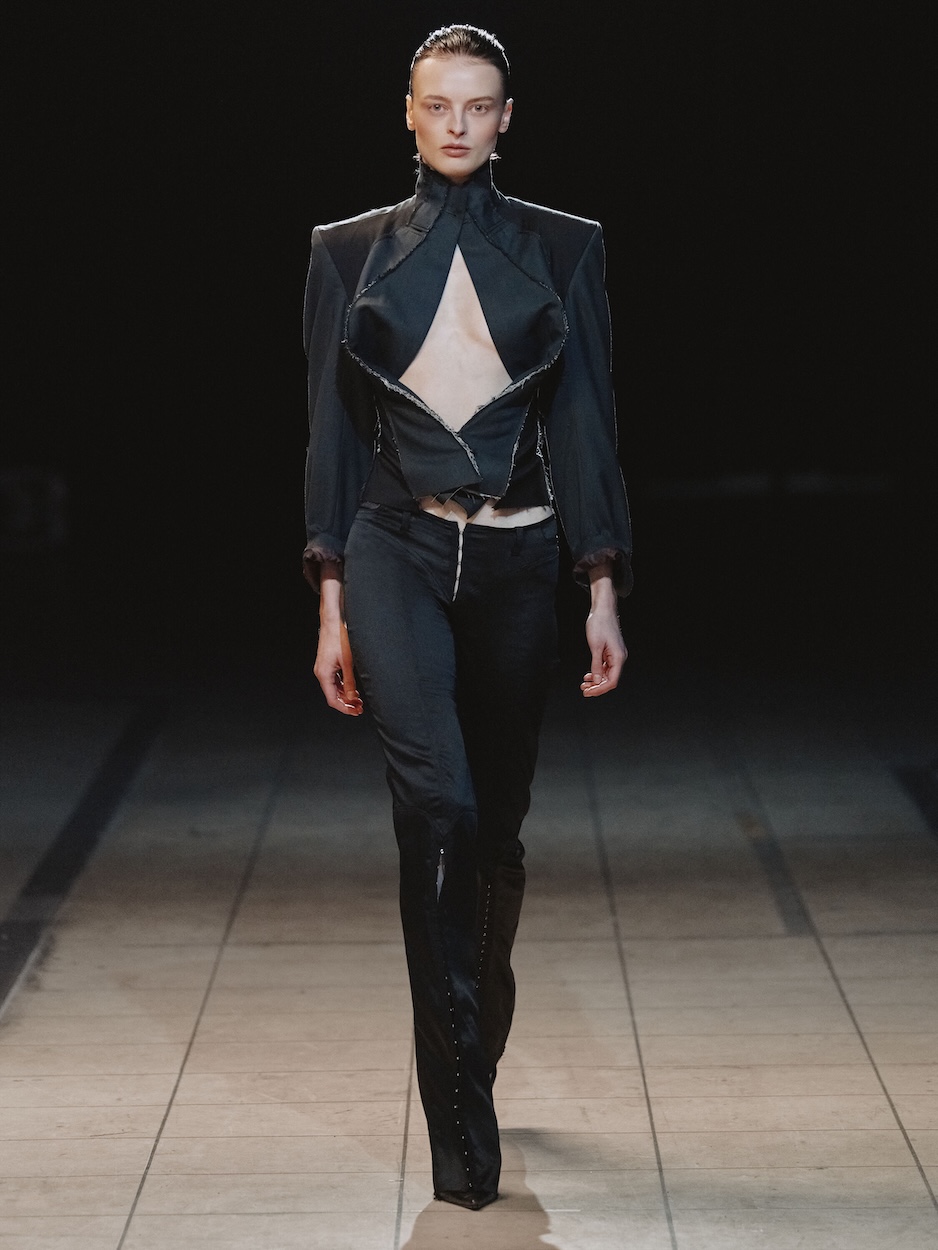 by Nicole Atieno Re-Engineering Power: A Conversation with Laura Gerte Berlin-based designer Laura Gerte is known for her sculptural silhouettes and emotionally charged approach to fashion, re-engineering reclaimed materials into garments that balance strength and vulnerability. Her AW26 collection, Deviant Defiant, draws on the cultural trope of the female villain, exploring willfulness, autonomy, and the fear surrounding female power. We sat down with Gerte to talk about the collection, her evolving voice, and the ideas shaping her work today. LAURA-GERTE-AW26 Photo: Emilio Tamez by Nicole Atieno Nicole Atieno: How does living and working in Berlin shape you personally, beyond your work as a designer? Laura Gerte: After nearly 13 years, Berlin no longer feels performative, it’s simply home. Being surrounded early on by born-and-bred Berliners grounded my experience, making the city feel normal rather than romanticized. I’ve learned I’m made for big cities, and after time in Paris, returning to Berlin before COVID was a conscious choice. It felt right, like the place I’ll stay for the long term. Did you experience the Berlin era where you moved here and had your wild times? In the beginning, definitely. I was completely in love with the city, cycling around, suddenly turning into a beautiful street or a wide open space and thinking, oh my god, I’m finally here. During my studies I spent a lot of time exploring, looking for new places. That curiosity never really went away. No matter how long you live here, or even if you’re born here, Berlin is so big that there’s always something new to discover, and it’s easy to forget just how vast and full of people it really is. Was there a defining moment when you realized fashion could be a way for you to describe your creative language? That really came with doing shows. Before, my focus was always on the garment itself, textures, surfaces, textiles, and the final piece. I didn’t believe much in concept; it was about making the clothes. That shifted over time. With more experience and a broader view of the world, I’ve developed clearer positions on certain topics and a desire to express them through my work. I’ve been doing fashion for a long time, but the shows marked the moment when I felt ready to share my perspective, not just the garments. With more experience and a broader view of the world, I’ve developed clearer positions on certain topics and a desire to express them through my work. LAURA-GERTE-AW26 Photo: Emilio Tamez LAURA-GERTE-AW26 Photo: Emilio Tamez Looking back at your previous collections, is there one that speaks to you especially now? Yes, the most recent one, the Spring/Summer collection. The process was very vulnerable and emotionally intense. It dealt with the complexity of the feminine experience, that constant state of alertness just from moving through the world. The mix of anger and vulnerability made it painful to create, but it also opened up a new level in my work and self-expression. The way people connected with it, and the intimacy and intensity of the show, really confirmed that shift. You often work with reinterpreted garments. What does “newness” mean to you in fashion today? For me, newness is more about re-engineering ideas than about something being brand new. The cutting process creates so much waste, so I try to work with the whole garment, turning it inside out, upside down, back to front, or reworking details, to create something new without producing excess. It’s not zero-waste, but it’s about being more conscious. Newness also isn’t about owning an idea. So many people make great clothes; what matters is how an idea is framed and presented. I’m not interested in things that feel fresh out of the factory. Working with secondhand garments that carry traces of past lives feels much more meaningful to me, there’s newness in their continued life cycle, not in being completely new. Newness also isn’t about owning an idea. So many people make great clothes; what matters is how an idea is framed and presented. Tell us a little bit about the new collection. What was the inspiration? The collection is inspired by the cultural trope of the female villain, reexamined through a feminist lens. I was interested in questioning whether these characters are truly “evil,” or simply framed that way because they represent autonomy, maturity, and a refusal to be contained by society, family, or men. These figures are almost always adult women, which implies knowledge, confidence, and power, and that kind of uncontrollable presence is often labeled as threatening. That energy shaped the collection. What was vulnerable and angry last season has transformed, we’ve moved through it. This time, the stance is unapologetic, self-assured, and fully grounded in that power. LAURA-GERTE-AW26 Photo: Emilio Tamez LAURA-GERTE-AW26 Photo: Emilio Tamez Have you seen a shift in your voice, in your design language or perspective? Yes, very much so. Each collection has become a reflection of my own journey through womanhood, how I feel about myself, my friendships, and the different stages we move through. As you get older, it becomes more interesting because you know yourself better, understand the world more clearly, and interact with it differently. Each collection has its own tone, but through a feminist lens I’ve really found my voice. What interests me most creatively is my own journey, and the shared journey of my sisters. What does a fashion show mean to you? What does it stand for? A fashion show is both exciting and vulnerable. You spend so long alone with the collection, and then suddenly it’s out in the world, seen and judged. You want it to be received well, but you can’t create with that in mind. There’s always a tension between what I want to say and what I think others might expect, and each season I have to let go of that and stay true to my own voice. In the end, the sho