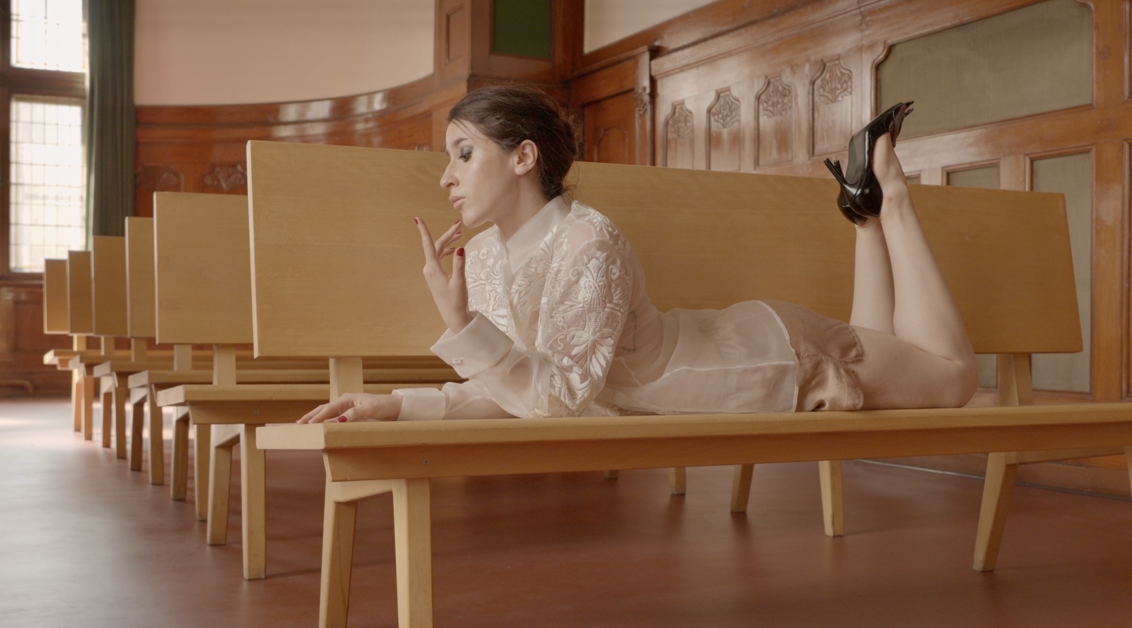 Selin Davasse is a Berlin-based performance artist whose work repurposes textual and performative techniques to explore the ethics of hospitality, narrative identity, and the unstable space between truth and fiction. Embodying multiple selves through shifting voices, gestures, and postures, her performances transform systems of thought into playful, intimate exchanges with the audience. Her latest project, Corpus Iuris Artis, presented during Berlin Art Week, unfolded as a three-part imagined legal process moving from deposition to trial to appeal blurring the boundaries between art and law. Through this work, Davasse interrogates accountability, complicity, and the performativity of truth, while playfully critiquing the power dynamics shaping the art world. Her works have been presented at the 60th Venice Biennial (2024); steirischer herbst, Graz (2023); Pirelli Hangar Bicocca, Milan (2023); Institute for Contemporary Arts, London (2023) Wiener Festwochen, Vienna (2022); KW Institute for Contemporary Art, Berlin, (2021). Fräulein Magazine sat down with Selin Davasse to talk about Corpus Iuris Artis, the performativity of truth, and the delicate balance between playfulness and critique that runs through her practice.